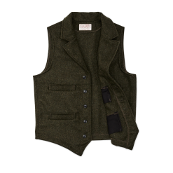 Our Mackinaw Wool Western Vest shrugs off wind and light rain while providing warm insulation. wet or dry. The notched lapels and pointed hem are a nod of respect to the bold pioneers who settled the West. Vests. known as waistcoats in Britain. were considered a requirement for proper attire in those days. The front pockets were sized and located for quick access to timepieces. Those same features that made the vest an indispensable garment on the range make our Western Vest a companion no matter where your journey leads.