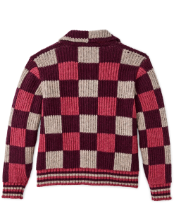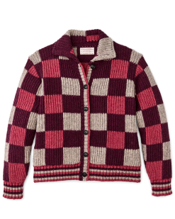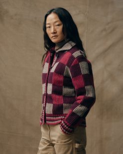 Women’s Checkered Wool Cardigan – Burgundy / Gray Check