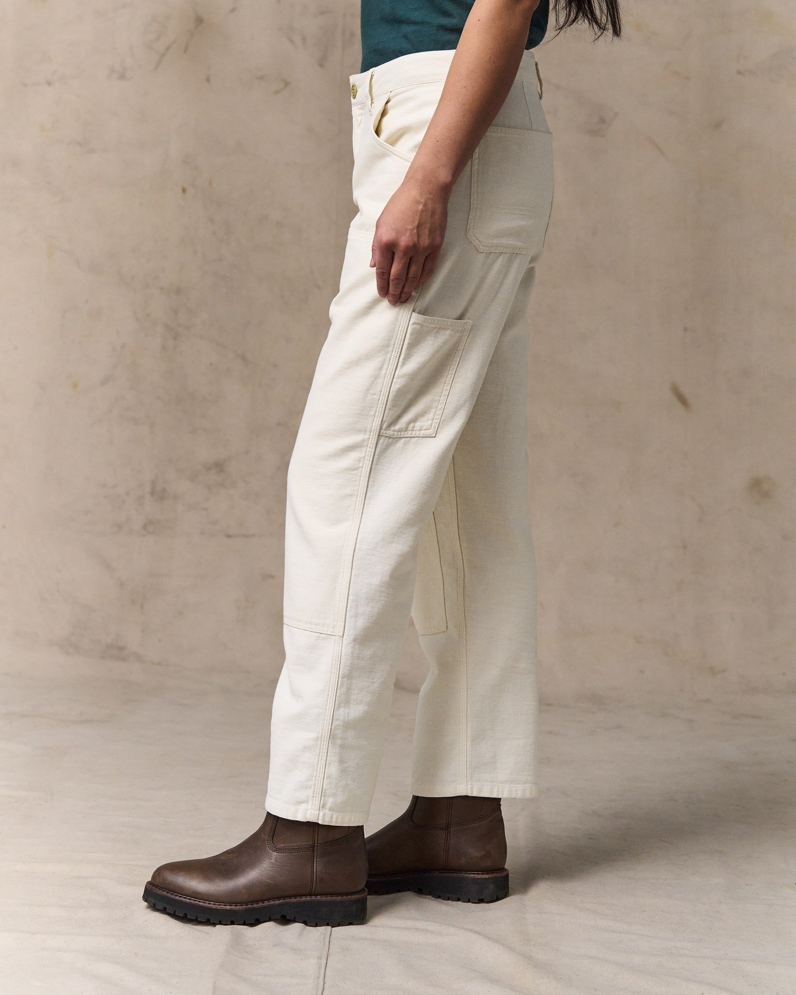 The leg fronts are reinforced with an additional layer of fabric for dependable protection in rugged conditions. Darts at the waistband shape an easy. comfortable fit. and the straight-leg cut allows free movement through active days. Front and rear patch pockets provide simple. secure storage. with side-leg pockets for tools or small essentials.