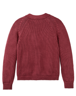 This classic sweater is knitted with soft organic cotton. The timeless cardigan design provides warmth with straightforward ease that is comfortable in any setting. Four-button front closure with a V-shaped neckline. The rib-knit cuffs and hem hold their shape. Pocketless for clean lines. Cropped at waist length.