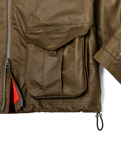 This jacket is an instant favorite whether tackling chores. exercising the dog. or running about. It’s made with our signature oil finish Shelter Cloth from England’s historic British Millerain. a pioneer of waxed canvas. In a nod to tradition. the caped shoulder construction eliminates exposed seams for improved water resistance. Large expandable cargo pockets carry the essentials and feature hidden hand pockets. The entire jacket is lined with warm brushed-cotton flannel. The drawcord-adjustable hem is a detail retained from the original.