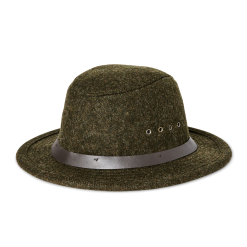 The Mackinaw Wool Packer Hat blocks rain and snow while keeping your head warm. The 100% wool is naturally breathable. minimizing chill-inducing sweating. Wool has been the fabric of choice for protection from the elements for centuries. Its unique structure allows it to wick away moisture for evaporation and continue to insulate if it gets wet. Our Mackinaw Wool has set the standard for natural performance and durability in the rainy and snowy Pacific Northwest mountains for well over a century. The interior cotton sweatband adds comfort. A leather hatband conceals the seam between crown and brim.