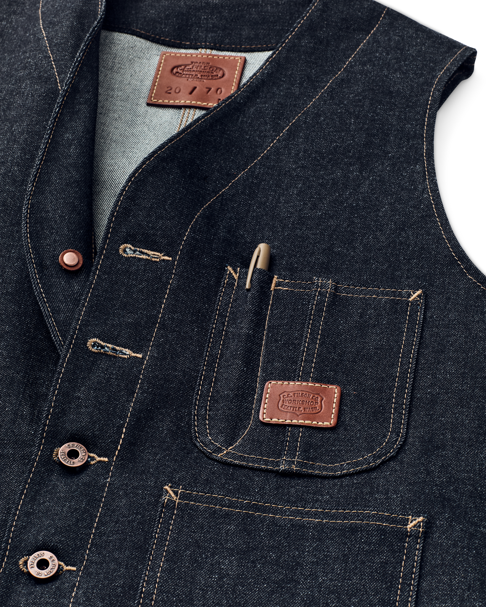 Just 70 of these classic vests were crafted in our Seattle Workshop. The design is adapted from surveyors’ vests in our archive. Unlined for versatile wear. it layers easily under a raincoat or an insulated jacket. Worn over a flannel. it protects your core from wood chips. sawdust. and heat-sapping wind.