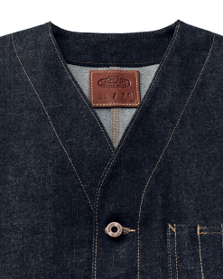 A flat-felled. triple-stitched center-back seam replaces the original’s two side seams. This construction delivers a natural drape while assuring lasting durability. Virtually unbreakable metal-shank buttons secure the front. and each piece is individually numbered on a custom debossed leather patch.